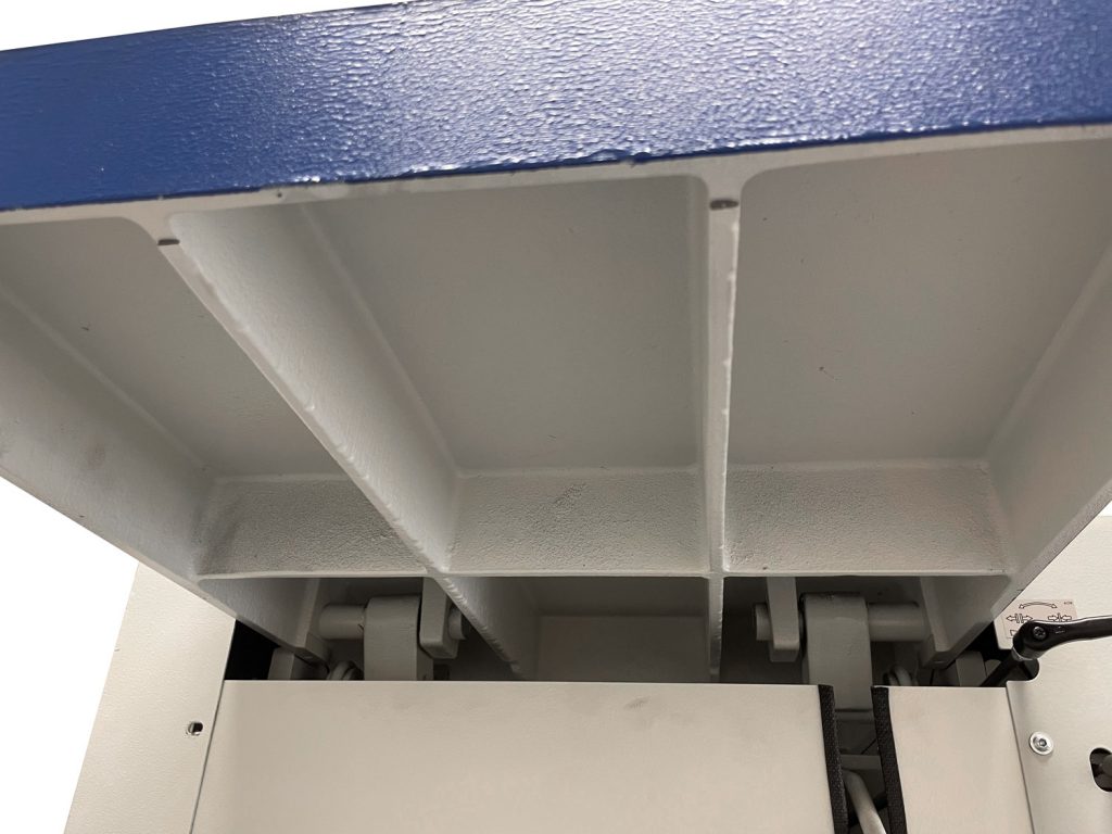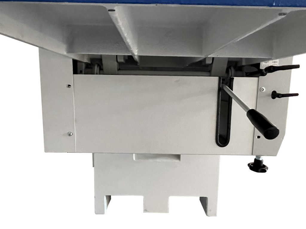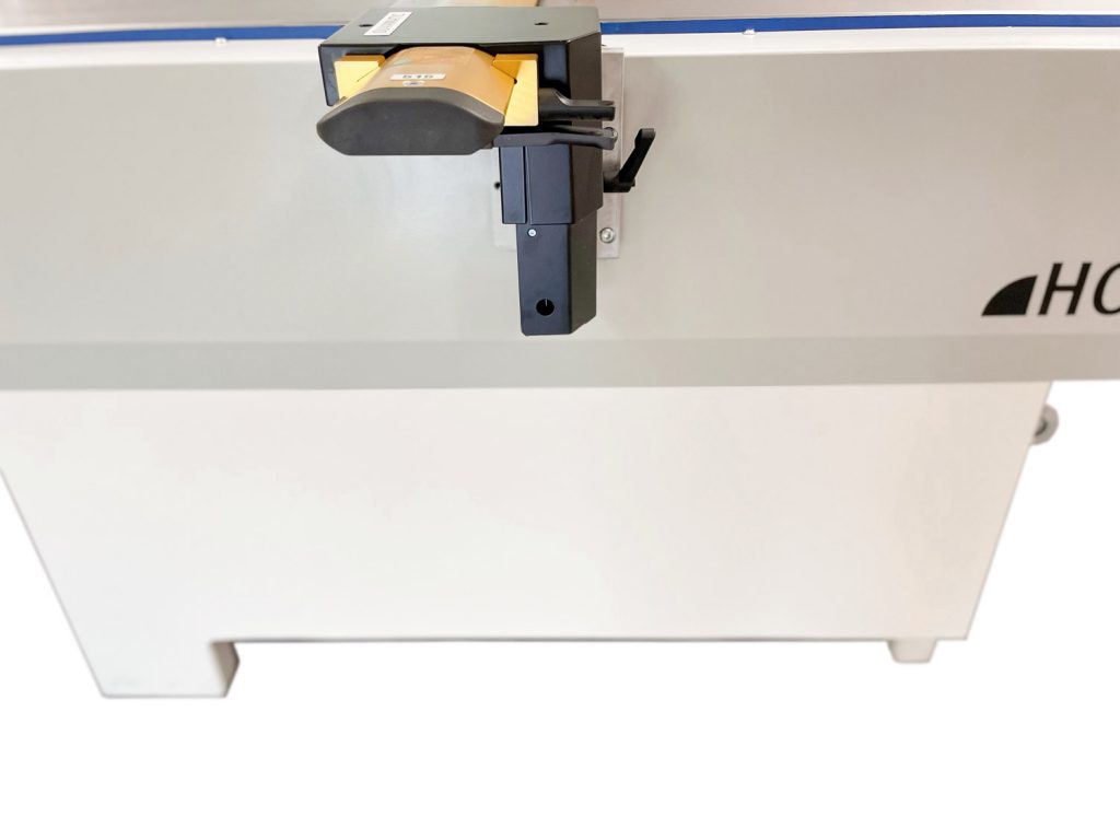 Die Maschine hat eine Hobelbreite von 500 mm. Die Verstellung für die Spanabnahme, bis 8 mm, erfolgt elektrisch und ist selbsthemmend. Eine LED-Anzeige zeigt die Spanabnahme an. Eine Umstellung auf Betriebsstundenzähler ist inklusive. Die Maschine ist mit langen, 3.000 mm, Abrichttischen ausgestattet. Der Aufgabe- und Abnahmetisch ist jeweils 1.500 mm lang, das bietet bei dem langen Abnahmetisch den Vorteil, dass das Werkstück lang geführt wird. Die Gusstische sind längsprofiliert (gehobelt). Dies verursacht das sogenannte Luftkissenprinzip, also kein Festsaugen des Werkstücks und damit einen leichtgängigeren Werkstückvorschub. Der massive Stahlständer ist in einem Stück mit den Seitenteilen gefertigt und sorgt für Schwingungsdämpfung und Laufruhe der Maschine. Der Maschinenständer hat einen Absatz für gute Fußfreiheit und ermöglicht damit eine günstige Stellung des Bedieners für eine ergonomische Arbeitsweise. Ebenso ist das Bedienpaneel in guter Erreichbarkeit für den Bediener angebracht. Die Anschlagführung ist leichtgängig über Spezialrollenlager mit Kugeln und ist wartungsfrei. Die Anschlagverstellung erfolgt über Einhandbedienung. Ein Hilfsanschlag für dünne Werkstücke ist im Lineal integriert. Ebenso eine Skala für das Messen der Werkstückstärke.