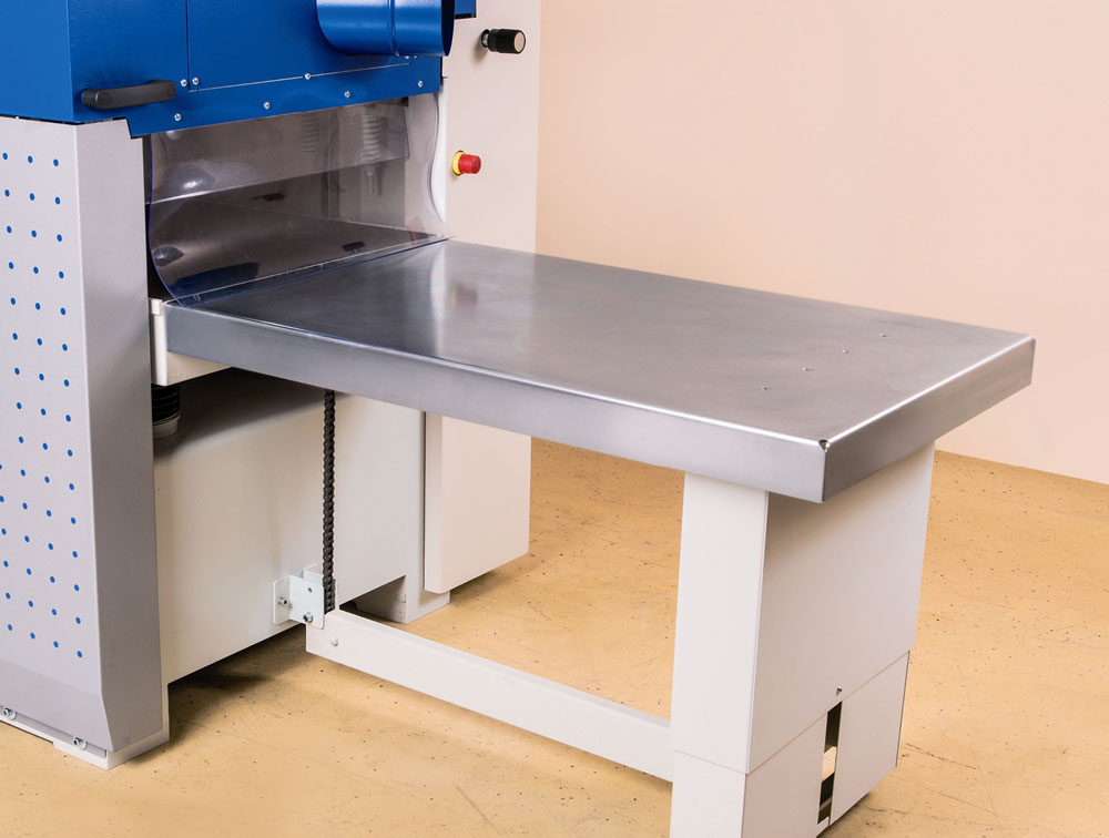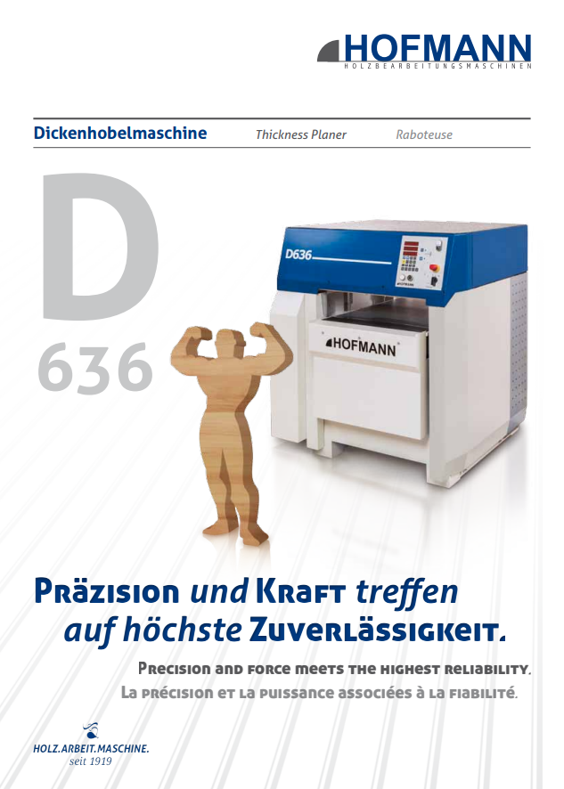 Zwei Auszugswalzen im Standard, der 4-fach geführte Tisch auf vier Spindeln gelagert und doppelreihige Präzisionskugellager an der Messerwelle garantieren auch nach Jahren noch beste Ergebnisse ohne Ausfallzeiten. Auch hier findet sich die grundsolide HOFMANN Qualität und sorgt für höchste Laufruhe und ideale Schwingungsdämfung.