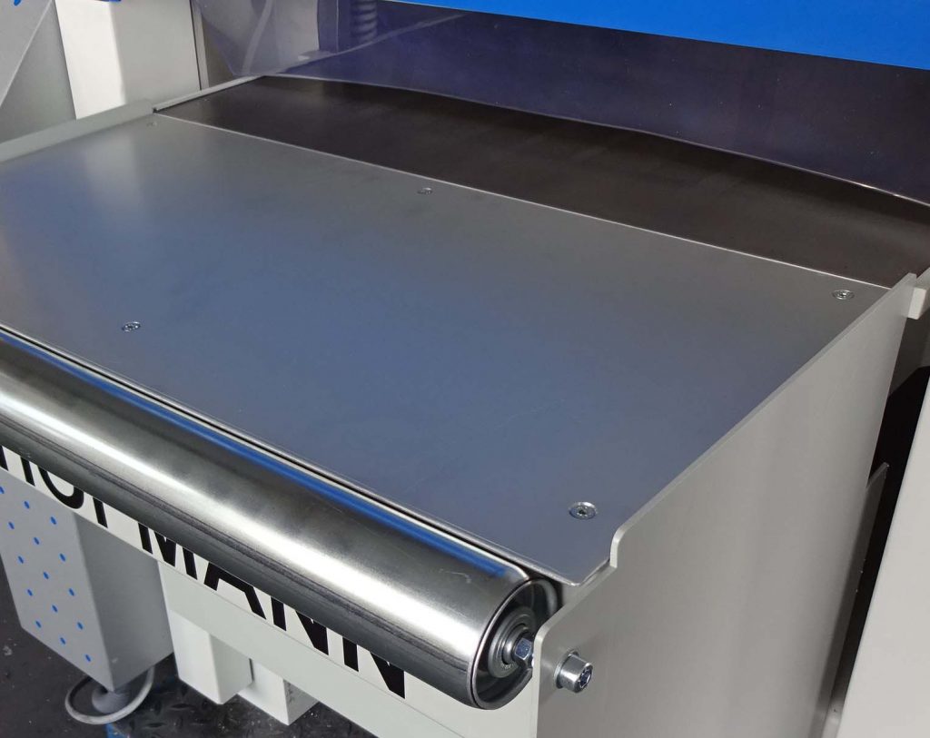 Ansatztisch 300 mm mit Einlaufrolle, Oberfläche eloxiert(Wahlweise an der Ein- oder Auslaufseite des Dickentisches zu verwenden