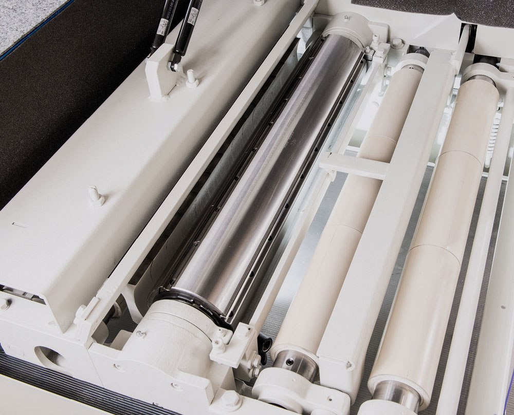• Einzugswalze in Gummi und zwei Gummi-Auszugswalzen